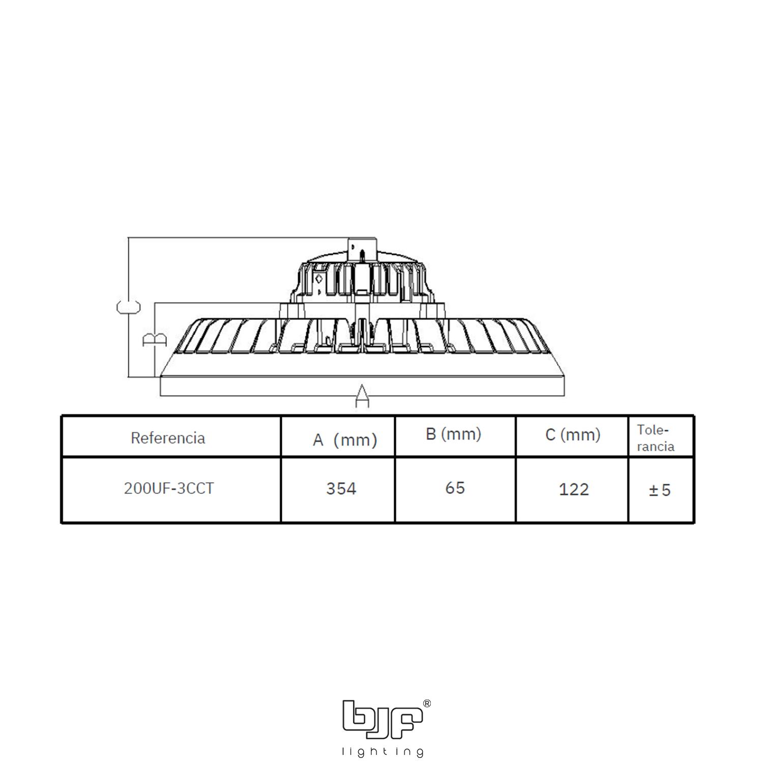 Especificaciones clave de la CAMPANA LED 200-160-120W 3000/4000/6000K