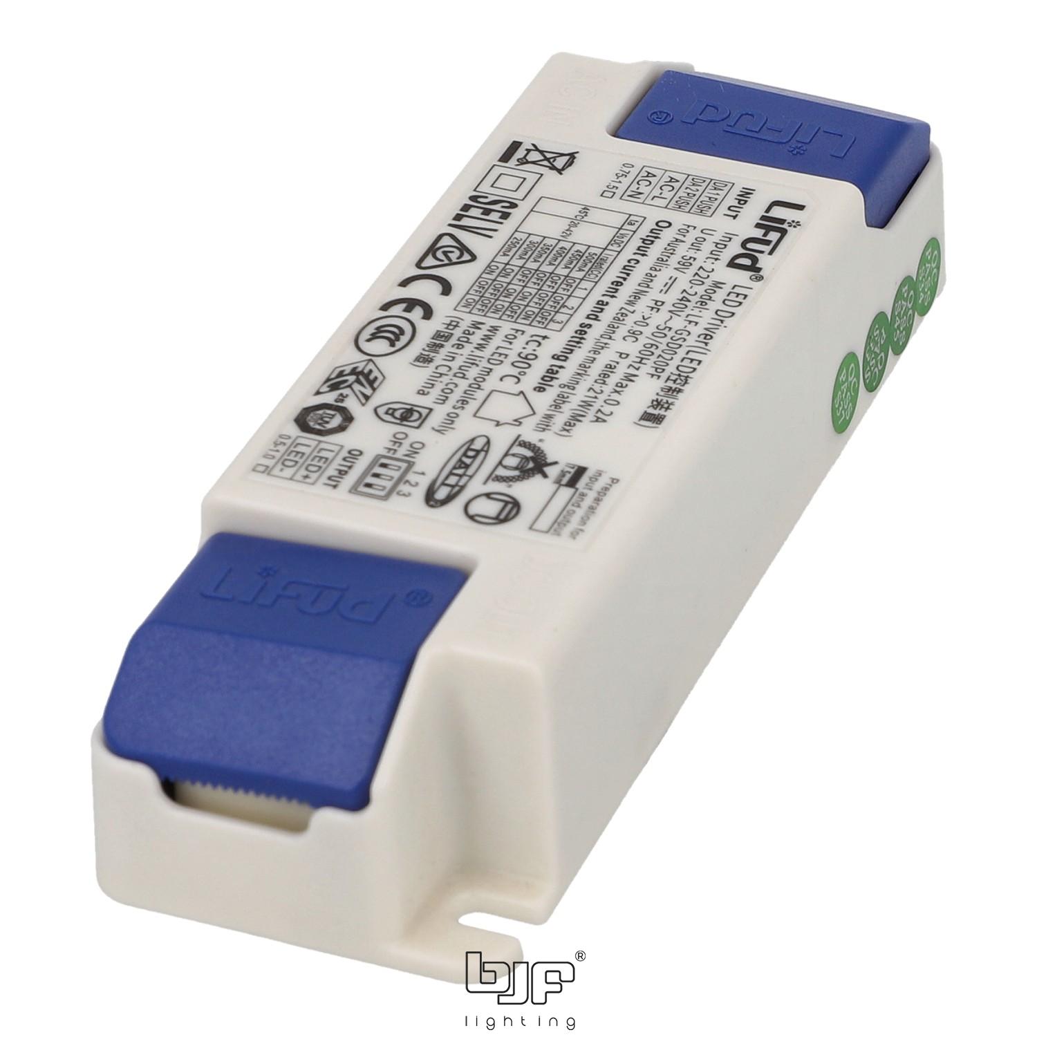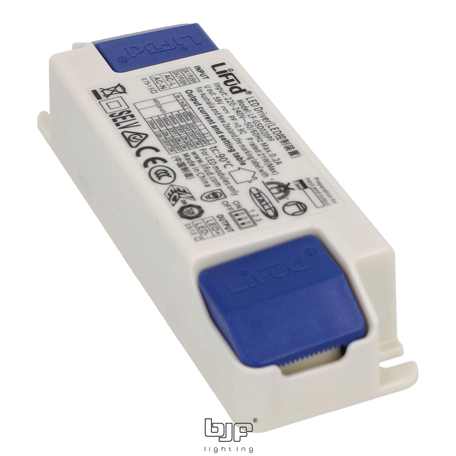 Fuente de corriente constante Lifud LF-GSD020PF DALI-2 / Push IP20 — 250–500 mA / 20 W / 20–42 V DC