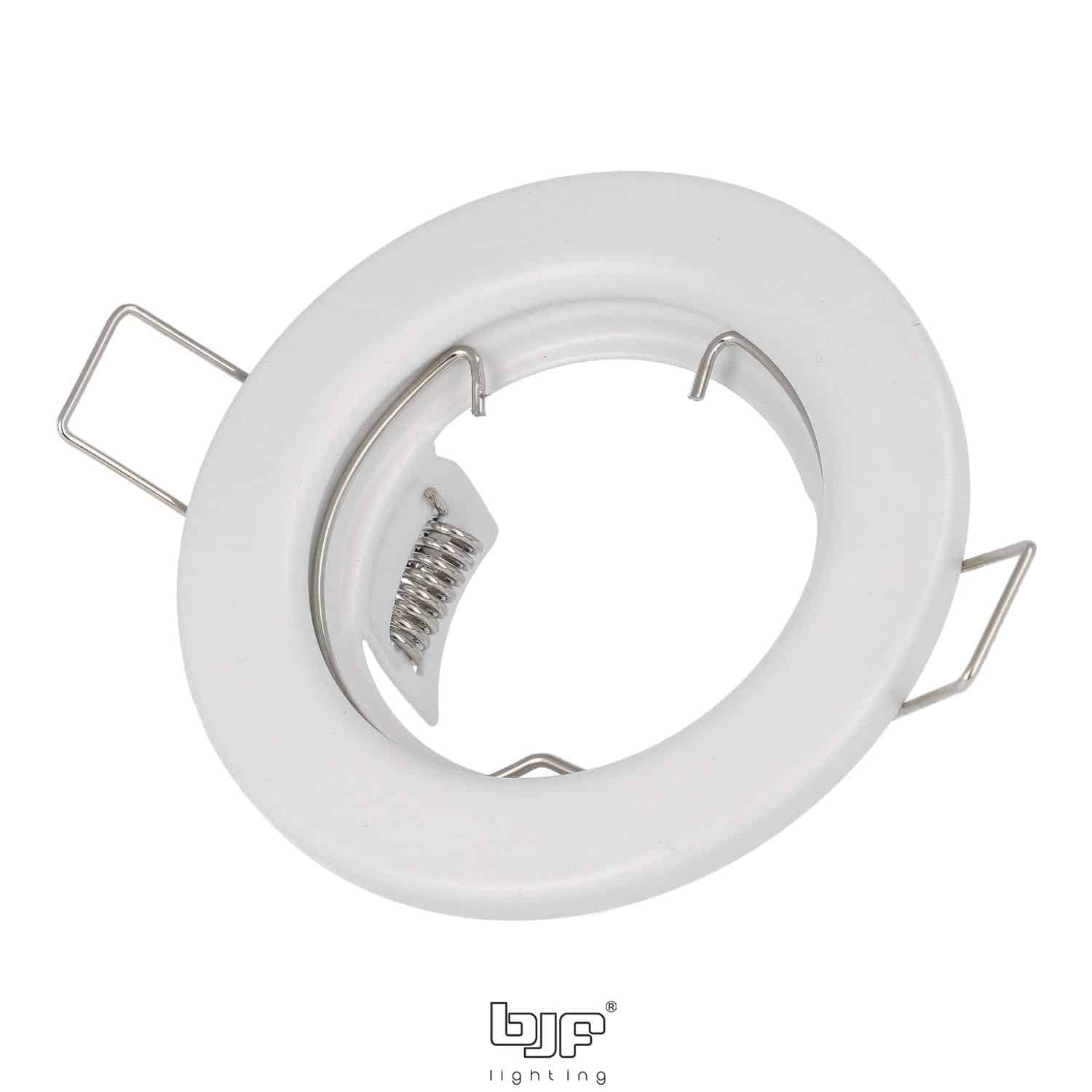 Aro fijo redondo para bombilla GU10 fabricado en chapa de acero con acabado blanco mate. Diseñado para instalaciones empotradas de iluminación interior, ofrece una solución sencilla y profesional para proyectos residenciales y comerciales que requieren un punto de luz discreto, limpio y funcional.