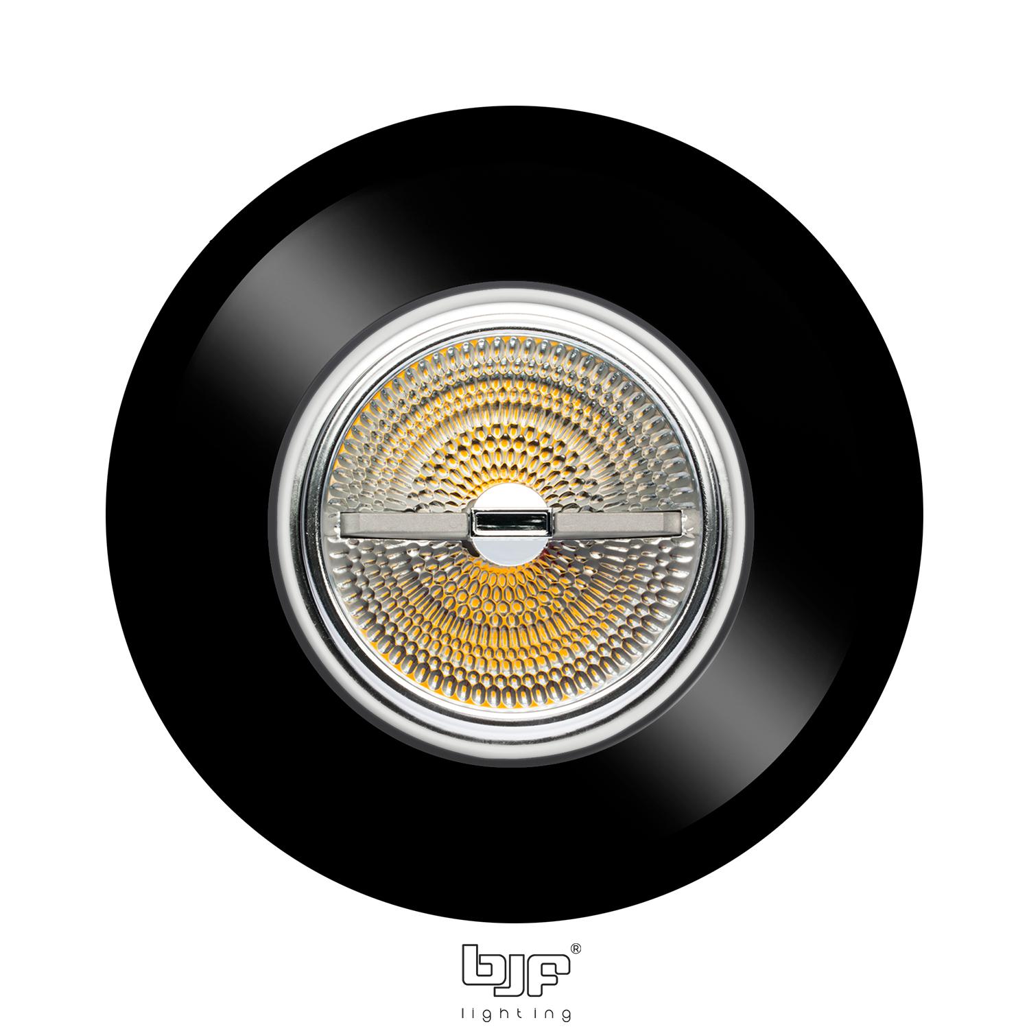 El aro empotrable está fabricado en aluminio de alta calidad, con un acabado negro mate que aporta sofisticación y contraste a techos oscuros o de estilo contemporáneo. Su diseño cóncavo y profundo controla la dirección de la luz y reduce los reflejos, garantizando una iluminación cómoda y sin deslumbramientos.