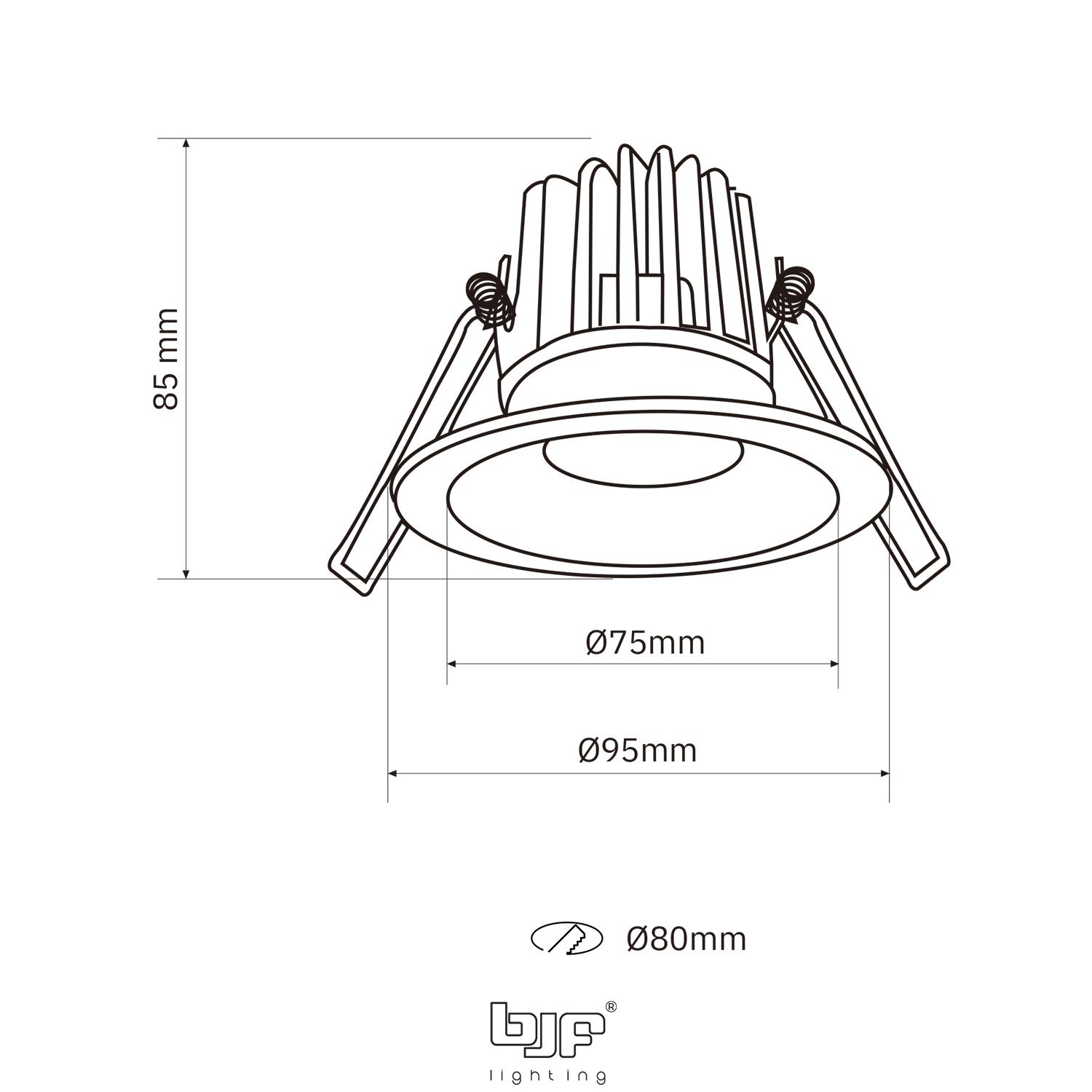 El SPOT CÓNCAVO Ø80mm LEDCompact 10W cuenta con un grado de protección IP44, lo que lo hace adecuado para interiores y zonas con humedad moderada, como baños o pasillos. Su instalación empotrable es sencilla y precisa, con un diámetro de corte de 80 mm y unas dimensiones totales de Ø95 x 85 mm.