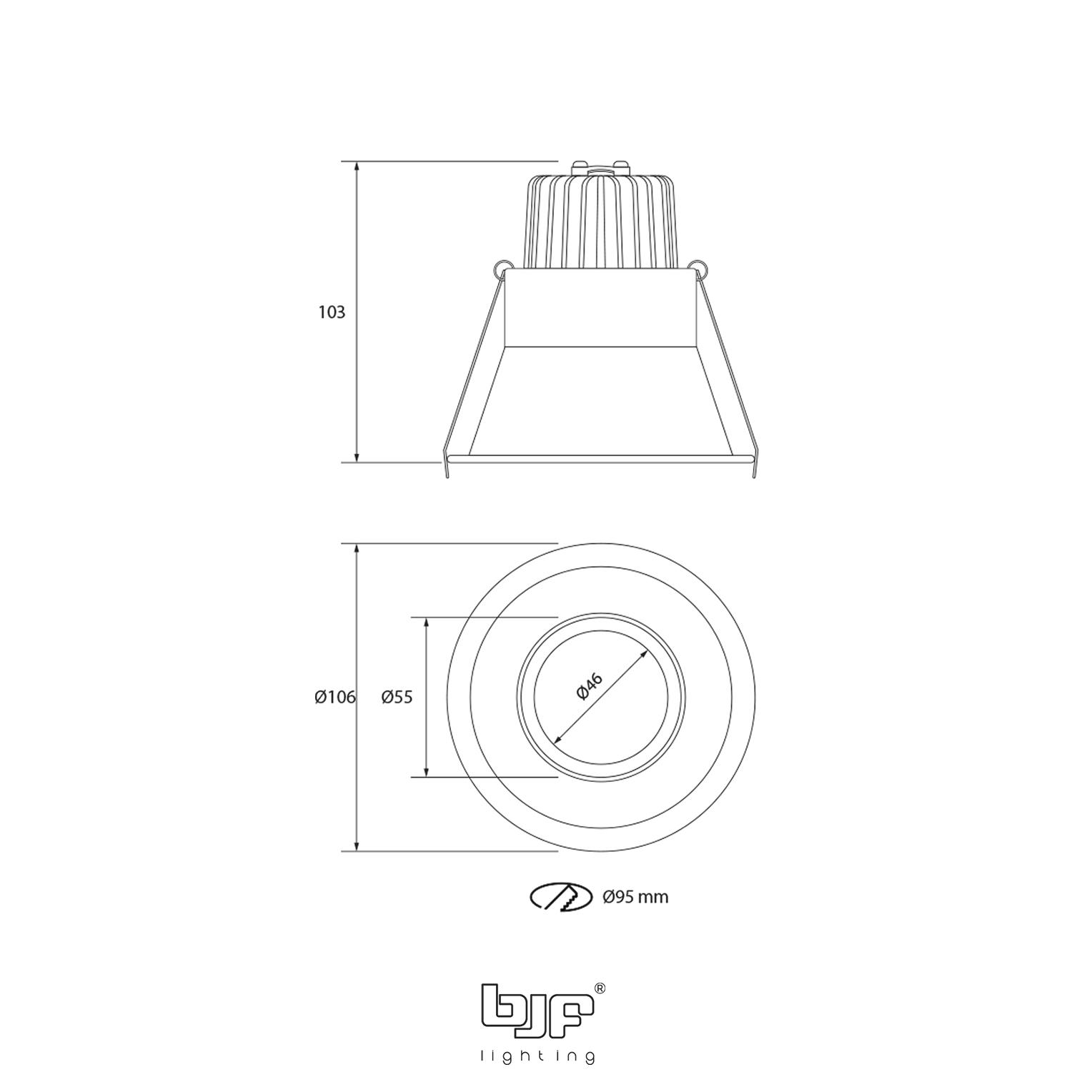 El SPOT REDONDO CÓNCAVO Ø95mm LEDCompact 9W NEGRO MATE BLANCO NEUTRO cuenta con protección IP40, adecuada para interiores secos, y se instala fácilmente mediante empotramiento con un diámetro de corte de 95 mm y dimensiones de Ø106 x 103 mm, ofreciendo un acabado profesional y discreto.