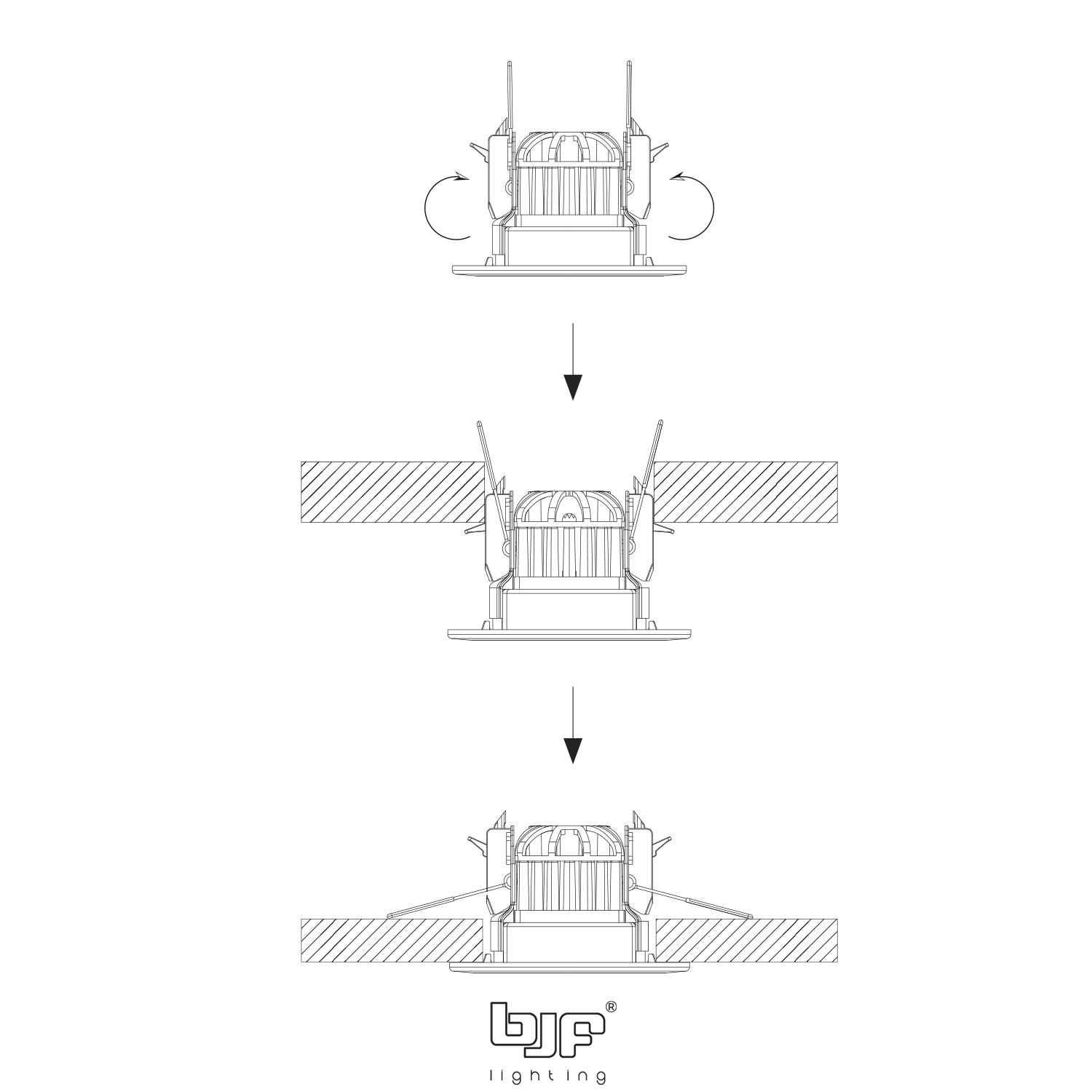 ⇒ Instalación rápida: sistema empotrable con corte Ø85 mm y fijación mediante muelles.