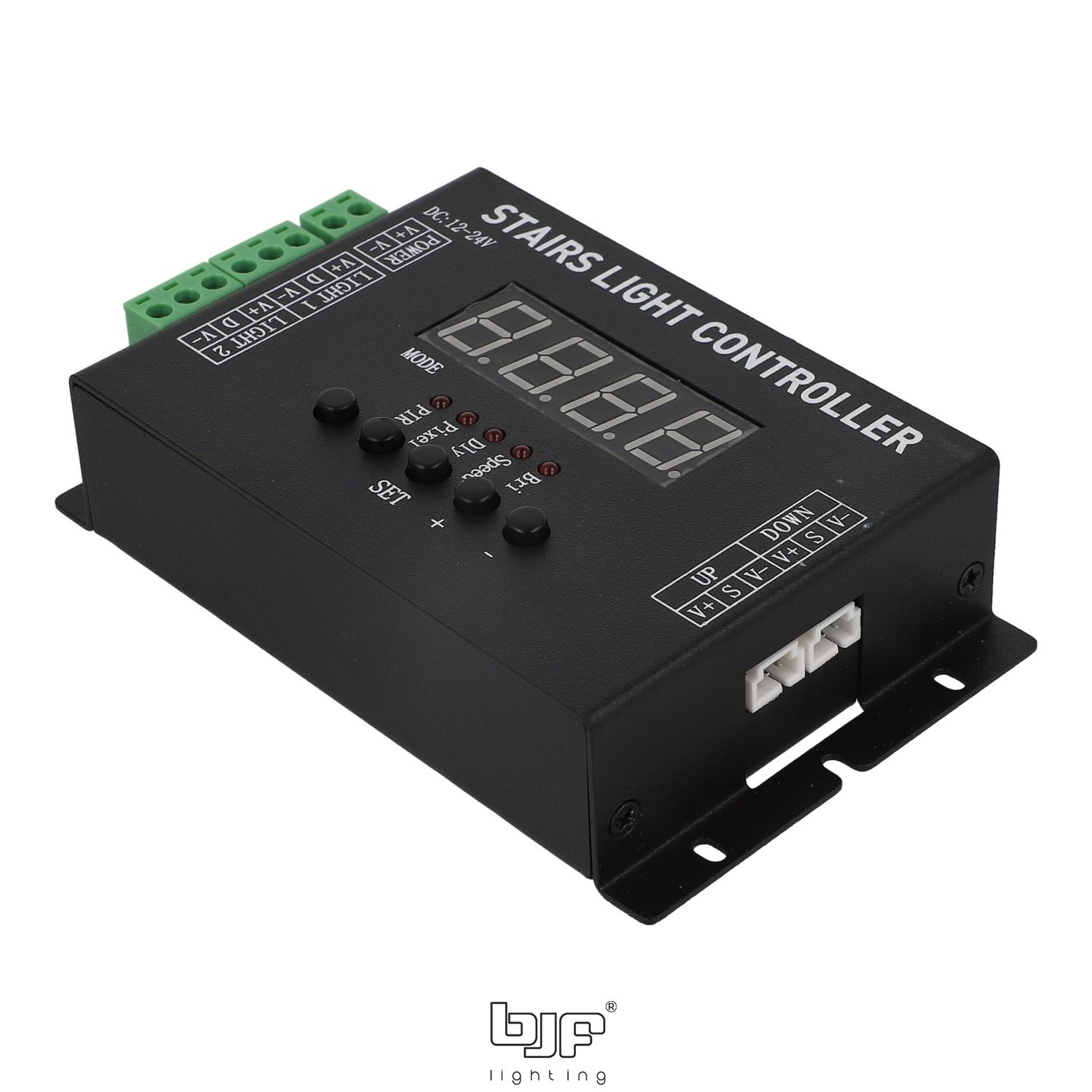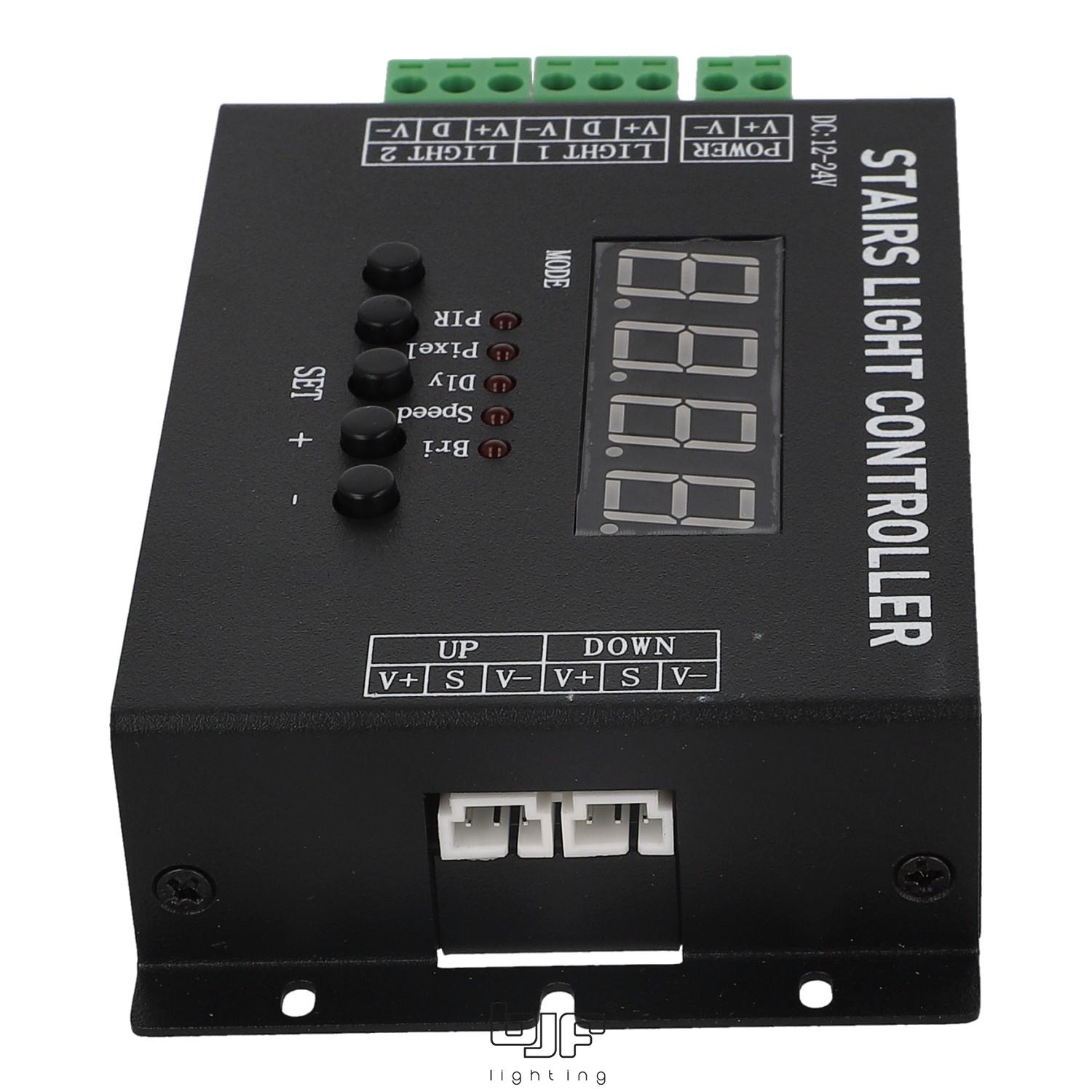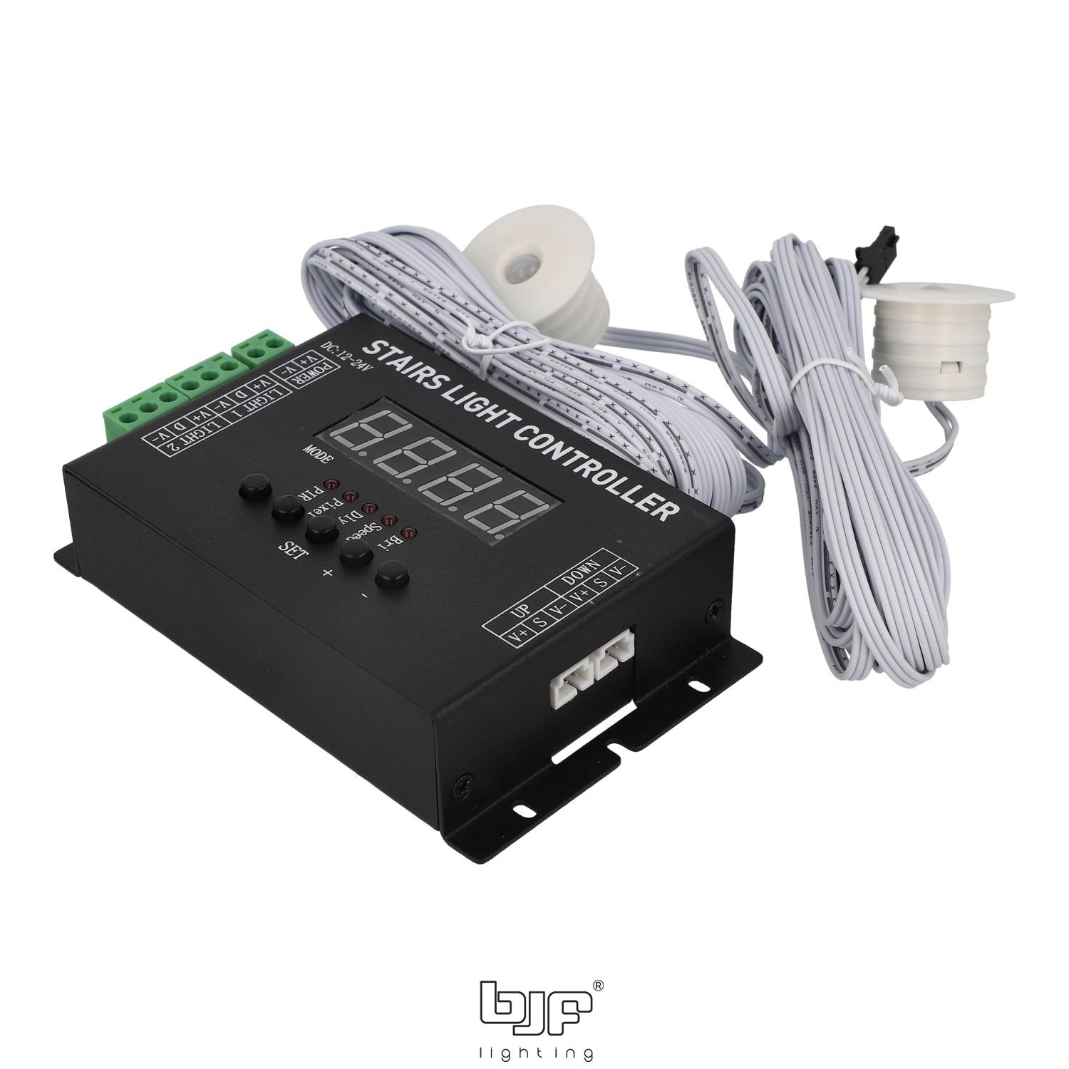 El Controlador de Escalera con 2 Detectores de Presencia es una solución ideal para optimizar el uso de la iluminación en escaleras y áreas de tránsito. Este dispositivo es perfecto para garantizar una iluminación eficiente y segura, activando las luces de forma automática mediante los detectores de presencia integrados. Con un voltaje de entrada de 12-24V DC y una corriente de salida de 6A, ofrece una potencia de salida de 72W a 144W, lo que lo hace adecuado para diversos tipos de instalaciones de iluminación monocolor. Su diseño sencillo y su capacidad de adaptarse a sistemas de iluminación convencionales, lo convierten en una opción confiable para proyectos residenciales y comerciales. Gracias a su funcionamiento basado en los detectores de movimiento, se asegura que las luces solo se enciendan cuando sea necesario, mejorando la eficiencia energética y prolongando la vida útil de las bombillas.