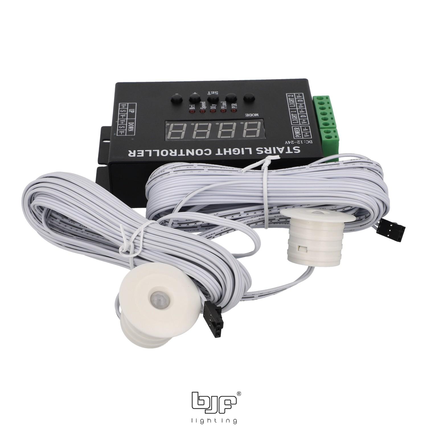A diferencia de otros controladores de escalera que requieren sistemas manuales de encendido, este modelo con 2 detectores de presencia ofrece una solución más automática y eficiente, ya que las luces solo se encienden cuando se detecta movimiento. En comparación con modelos más simples que solo controlan la iluminación de manera manual o fija, este controlador permite un ahorro energético significativo y una mayor comodidad al eliminar la necesidad de encender y apagar las luces de forma manual. Además, con su capacidad de soportar hasta 144W, este modelo ofrece una mayor capacidad de carga en comparación con otros controladores que solo son aptos para cargas menores, lo que lo hace más adecuado para una gama más amplia de aplicaciones.