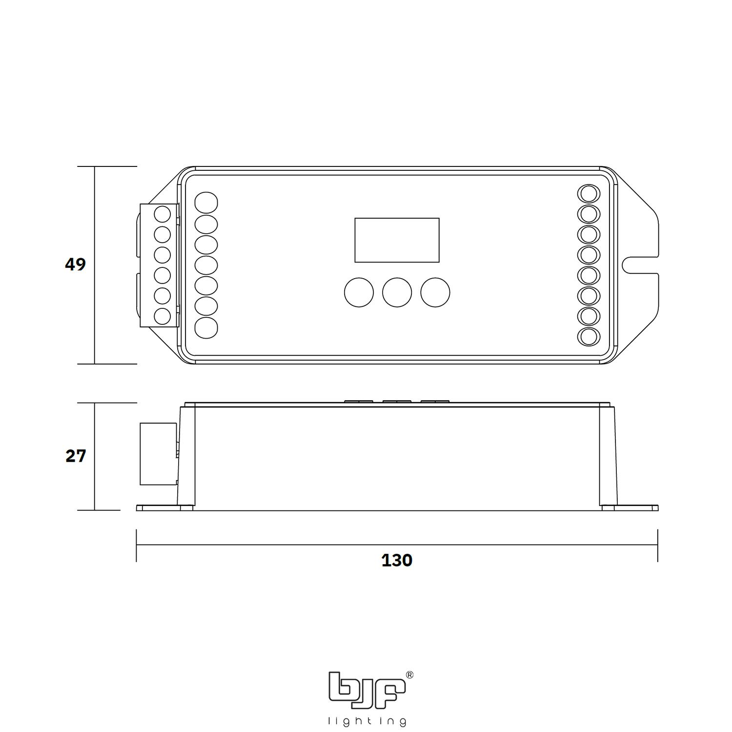 El Controlador Regulador DALI 5 en 1 soporta un rango de voltaje flexible de 12V~24V DC, lo que permite su integración en una variedad de sistemas de iluminación.