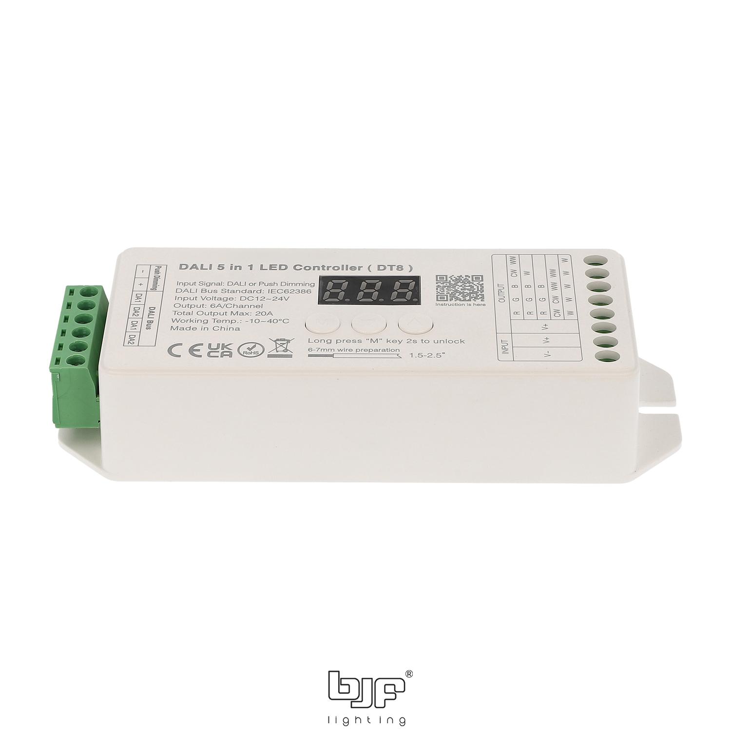 En comparación con otros controladores de iluminación LED en el mercado, el Controlador Regulador DALI 5 en 1 destaca por su compatibilidad con tres tipos de iluminación: RGB, RGBW y RGBCCT, lo que lo convierte en una opción mucho más versátil y adaptable a diversas necesidades de iluminación. A diferencia de los controladores estándar, que generalmente se limitan a un solo tipo de configuración, este controlador ofrece una experiencia mucho más personalizada. Además, su capacidad de regulación Push y DALI le otorga una ventaja sobre otros modelos que solo permiten control básico de encendido y apagado.