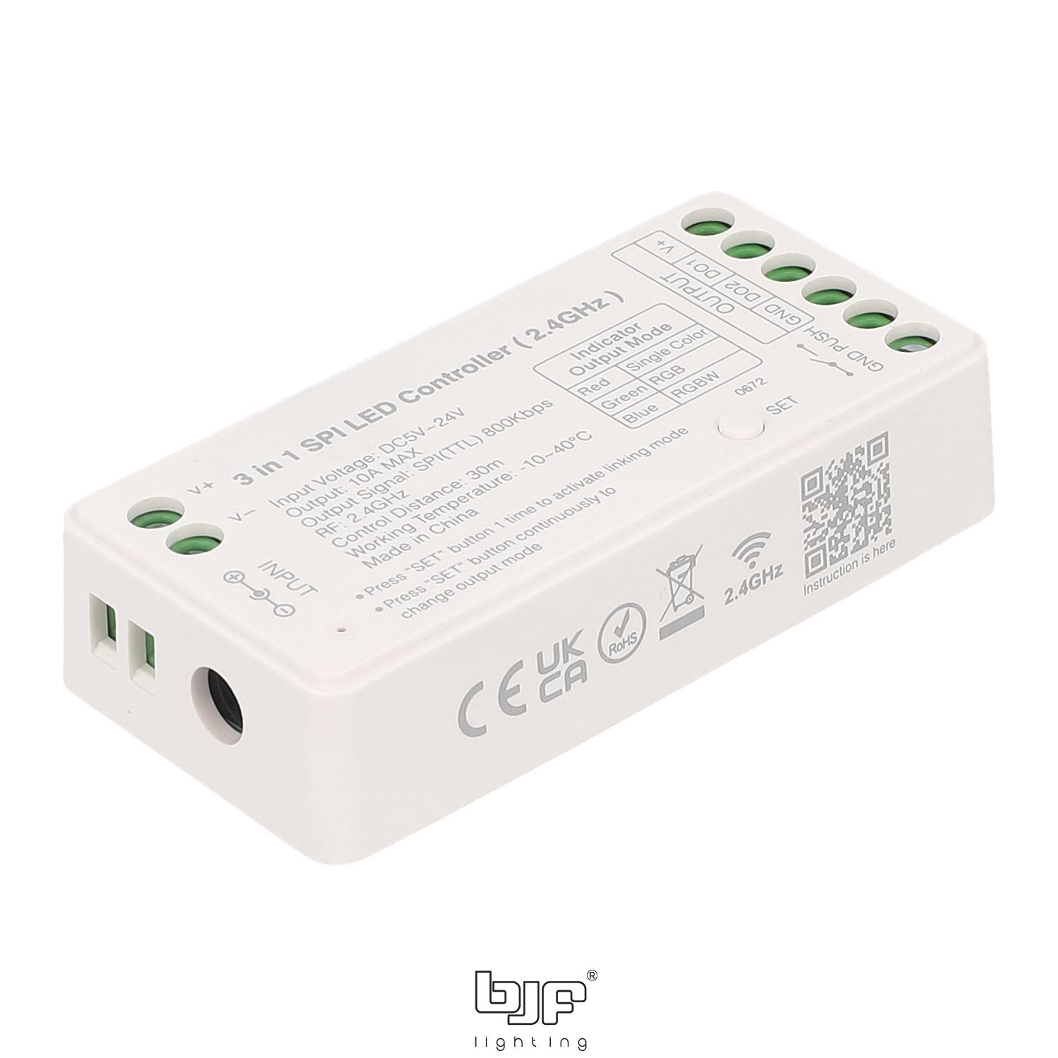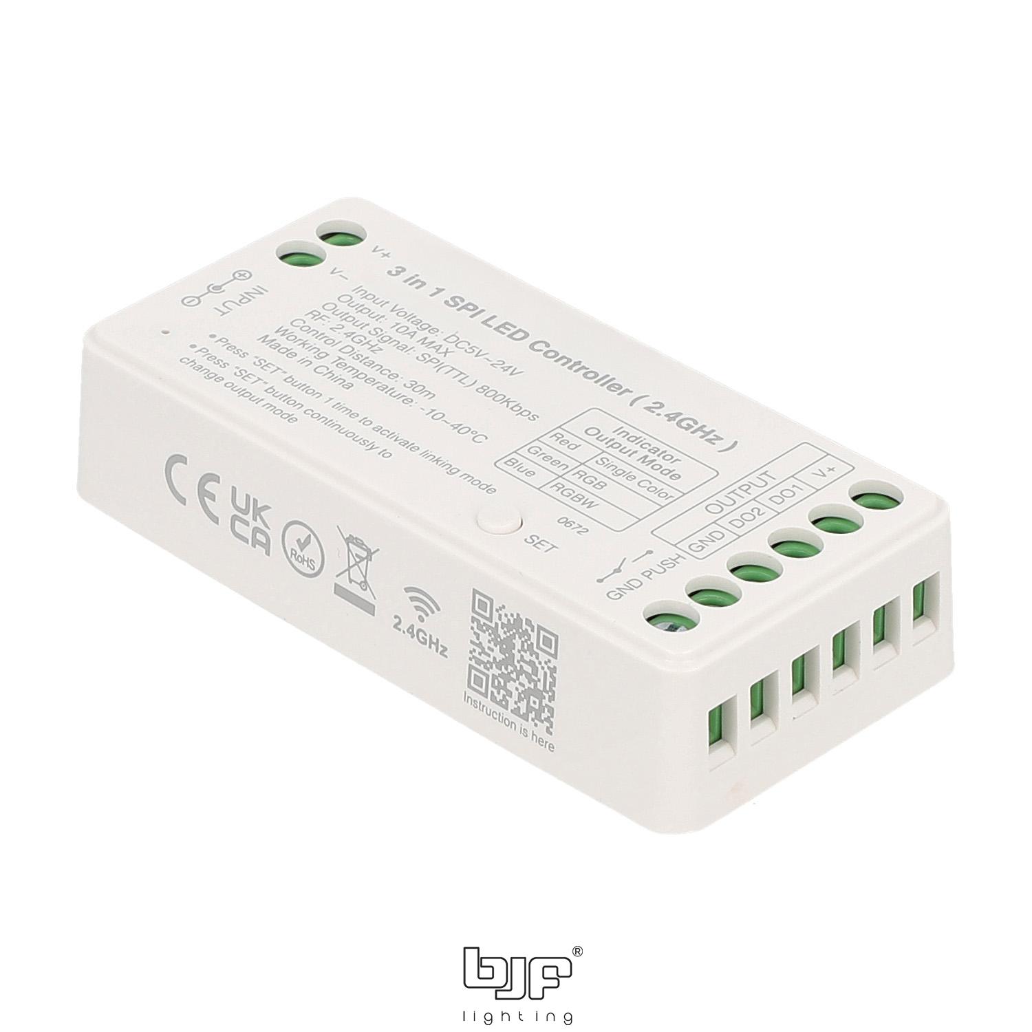 El Controlador SPI 3 en 1 5-24V 10A 2,4GHz Monocolor-RGB-RGBW es ideal para instalaciones domésticas y comerciales. En el hogar, puedes utilizarlo para gestionar sistemas de iluminación ambiental, creando efectos personalizados en salas de estar, dormitorios o cocinas. Su capacidad para ajustar la temperatura de color y la saturación te permite modificar la atmósfera del ambiente según la ocasión. En entornos industriales o comerciales, este controlador es perfecto para proyectos como escaparates, iluminación de teatros o eventos en vivo, donde se requieren efectos de iluminación complejos y dinámicos. Además, gracias a sus modos pre-programados, este controlador facilita la creación de ambientes sin necesidad de intervención constante. Es ideal también para la iluminación de exteriores, como jardines, patios o fachadas, donde se busca dar un toque visual atractivo y funcional.