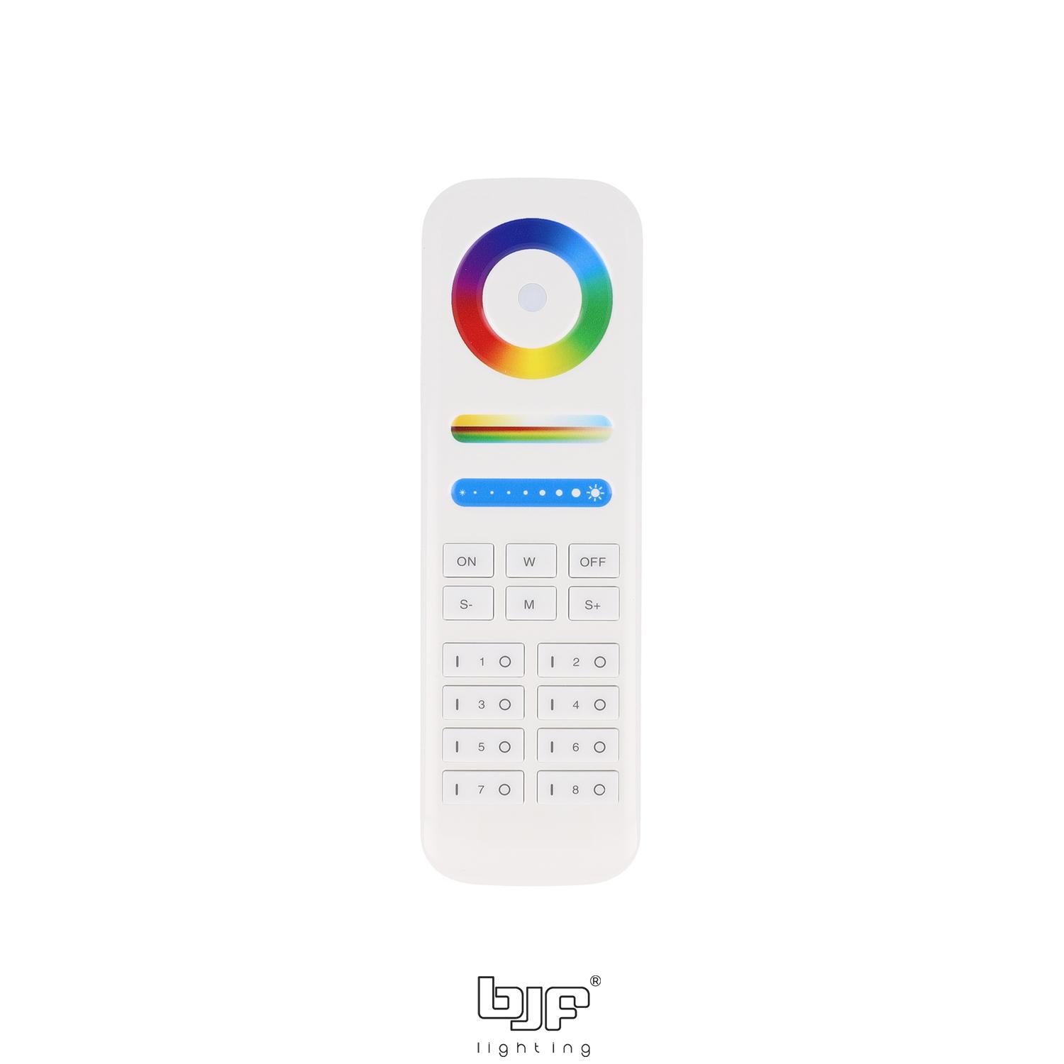 A diferencia de los mandos tradicionales con botones físicos, este mando táctil proporciona una experiencia más intuitiva y rápida. Comparado con modelos de 4 zonas, este modelo de 8 zonas ofrece mayor control y flexibilidad, ideal para instalaciones más complejas. También supera a los mandos que solo soportan RGB o CCT, ya que permite gestionar todas las configuraciones de color, incluyendo RGBW y RGBCCT. Su tecnología de frecuencia 2.4G mejora la estabilidad de la conexión frente a modelos de menor frecuencia.